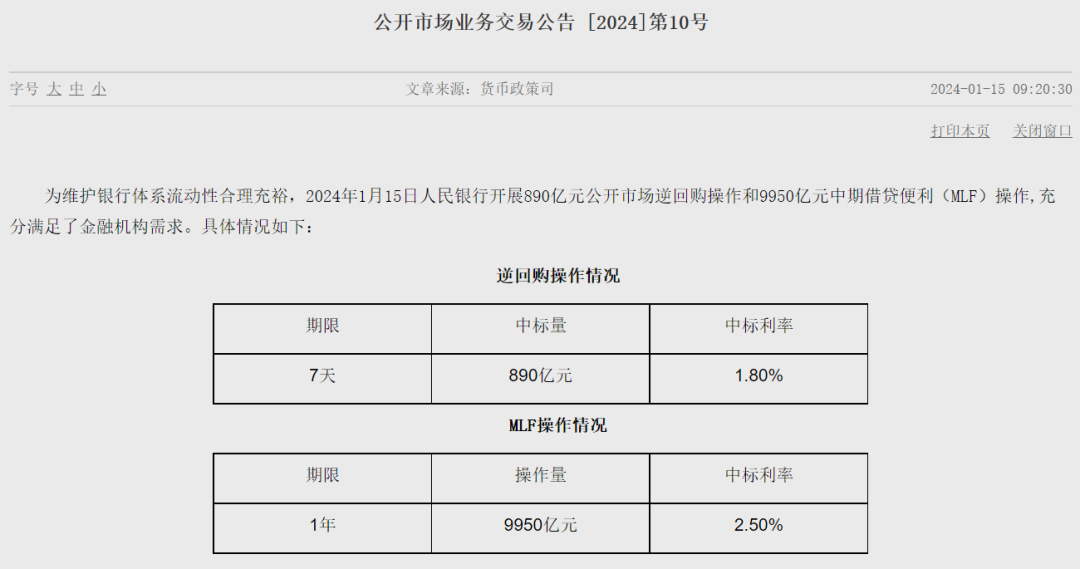 央行表示,此次开展MLF是为了维护银行体系流动性合理充裕,充分满足金融机构需求。