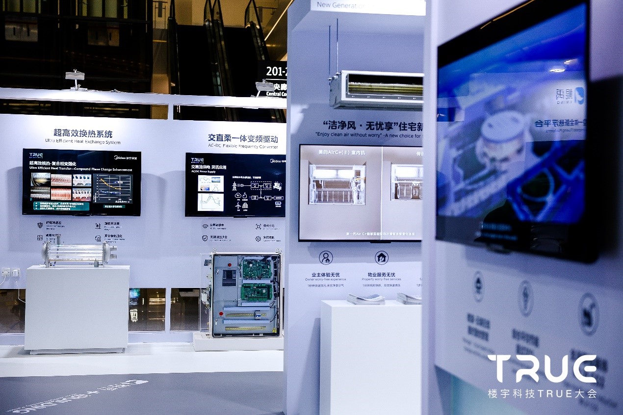 iBUILDING展区以数字科技的视角打造智慧建筑,数字化连接商用空调、电梯、控制系统等楼宇设备,提供全栈综合服务,克服数据孤岛,提升运营效率。iBUILDING赋能LINVOL、MDV、鲲禹、美控等终端产品,推出iEasyEnergy、iLINVOL客户版、i管家、iBUILDING Rooms、数字能源管理系统等软件产品,展示数字连接和智能管理在楼宇科技中的创新应用。MDV展区展示了三大核心产品:Air C+二代风管式室内机、新生系列和工业柜机系列。Air C+二代风管具有1秒钟快速排污、1分钟风轮快拆、1步操作左右接管的产品特点,为用户提供清新空气的同时,实现了清洗和设计的轻松无忧。新生系列旨在轻松应对多种挑战,实现简便的改造,提供方便快捷的安装,随时掌握操作。工业柜机系列能满足多重工农场景需求,适应不同送风距离,支持高效工农生产。MDV通过这些产品展示了全面解决方案,呈现了美的楼宇科技多联机领域的创新成果。鲲禹展区展出了最新一代磁悬浮离心机组的实物产品,也展示了鲲禹以其自主研发的科技能力,能提供智能高效的省心运维、专业定制的解决方案。电梯展区生动展示了客梯轿厢、闸机、机器人、四合一外呼等实物产品。通过生动展示、讲解和视频,参观者还可以深入了解MECS2控制系统、MDDS美的目的楼层群控、智慧电梯管理及数智移动服务平台等创新技术,为参与者呈现了最新的、全面的电梯科技和服务。美控展区展示了DDS、DDC、脑机接口和空间控制模块等实物产品和演示视频。作为中国楼宇自控与智能化工程的领先者,美控产品系列具有零代码编程、自适应PID、信息安全认证、DDC内置算法以及空间控制便捷配置等特点。美控深耕中国运维场景和细分行业应用,为中国楼宇自控带来新的变革。