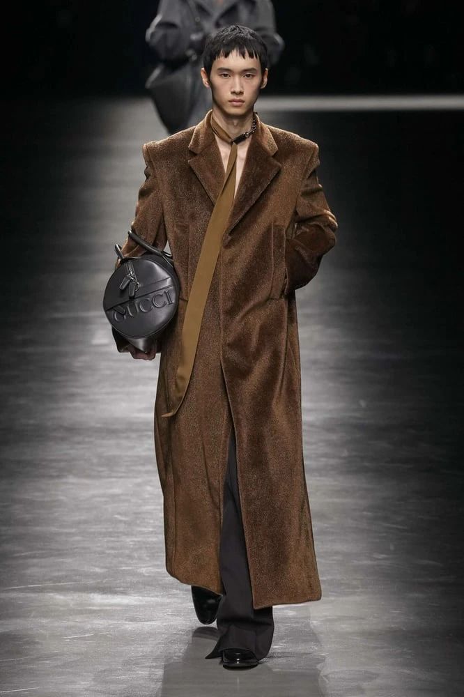 近日,Gucci创意总监Sabato De Sarno负责的首个男装系列已在米兰男装周发布,该系列被命名为Gucci Ancora,凸显了该设计师对于80年代Gucci风格的喜爱。整体风格延续女装系列的时尚简约,涵盖大领单排扣风衣、皮夹克和乐福鞋等多款时尚单品。(时尚头条)