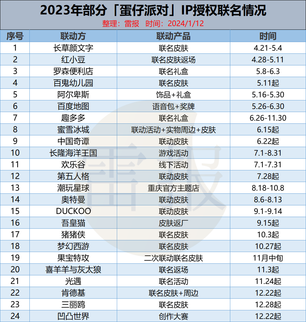2023年,被淘天榜单描述为“2023年国民级游戏”的《蛋仔派对》一跃成为新晋的授权联动“狂魔”,被网友戏称为“路过的蚂蚁都要联动一下”。