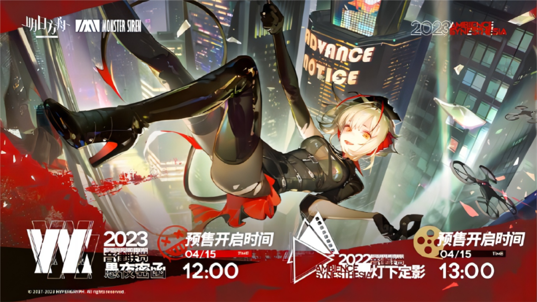 《明日方舟》最开始出圈的是“美术”“玩法”以及“故事”。在进入IP化阶段后,明日方舟就开启了商业授权模式,并开始打造“IP文化”,其中最核心的便是“音乐”。2021年,明日方舟推出了首场《明日方舟》「音律联觉」,其热度就已远超业内人士预期;2023年,「2023 音律联觉-愚夜密函」专场演出的预售票通道仅开通数秒钟,五个档位的上万张门票已全部显示无票。