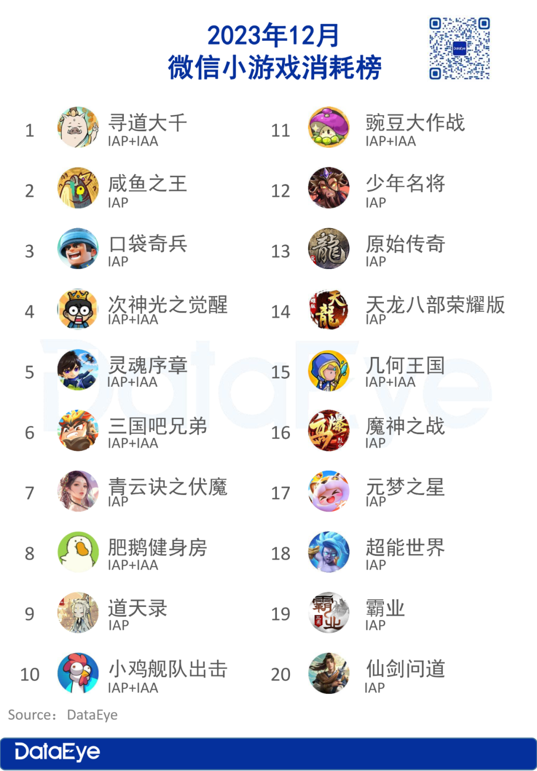 基于各方数据,DataEye独家公布微信小游戏数据,定期发布月度微信小游戏观察。(以下数据为DataEye独家获取,非微信官方,经核实误差不超过1%)点此回顾十一月报告