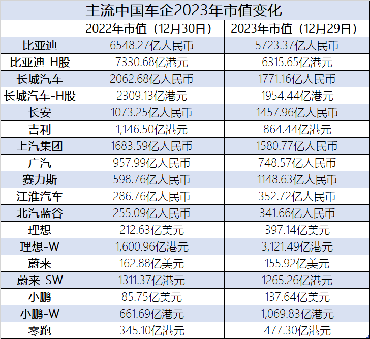 然而尽管销量喜人,资本市场却并不一定买账,不少上市车企的市值在2023遭遇了大幅缩水。当然,也有部分企业,因为各自不同的原因备受资本市场热捧,市值实现了大幅度攀升。