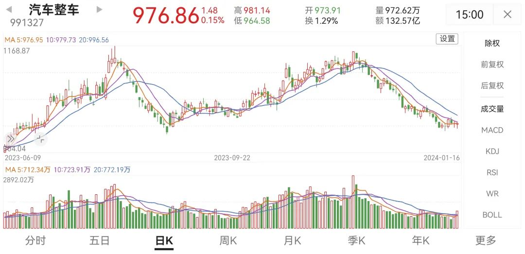 A股汽车整车板块股价走势,图片来源:中信证券截图