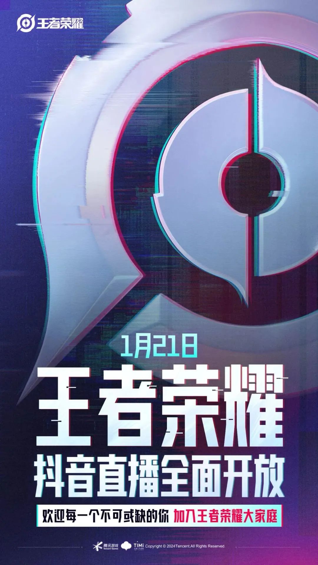 1月13日,《王者荣耀》官方微博宣布,1月21日起,《王者荣耀》抖音直播将全面开放。这将成为腾讯和字节跳动因《王者荣耀》直播侵权问题陷入纷争数年后的首次合作。