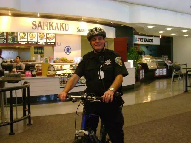 ▲在美国旧金山机场内自由穿梭的自行车巡警。