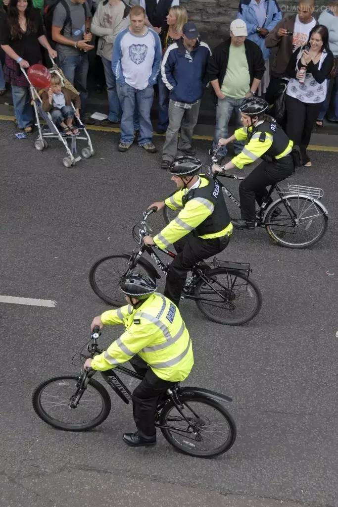 2008年奥运火炬在伦敦传递时,英国警方也派出了自行车警察,保护火炬手同时发挥探路开道作用。