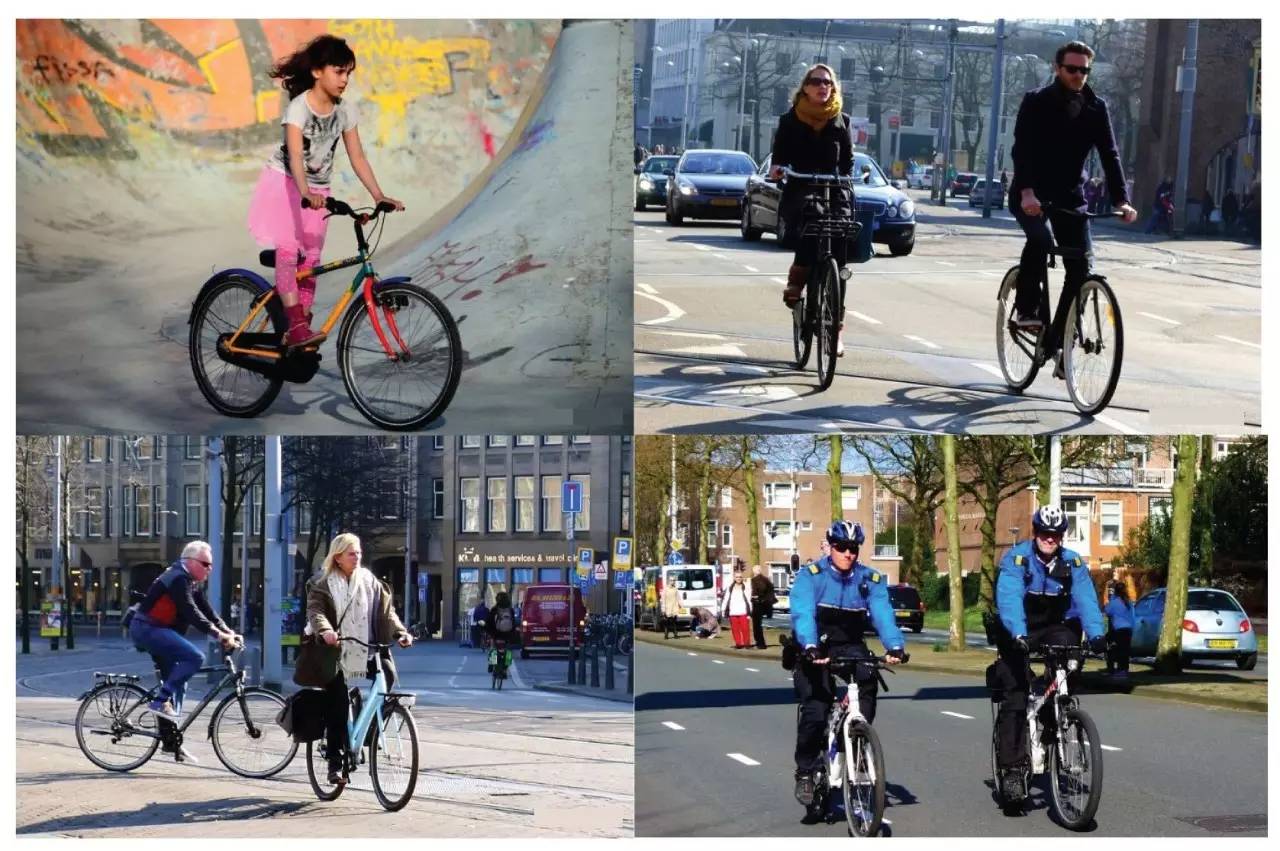 荷兰的自行车数量比人口还多,是总人口的1.3倍。家庭主妇骑车去买菜,工薪阶层骑车上班,连警察都是骑着自行车巡逻。