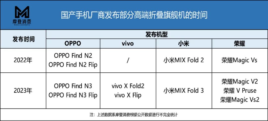 据「摩登消费」不完全统计,“VO荣米”自首款高端折叠旗舰机发布后,均保持着“一年一发甚至三发”的节奏。