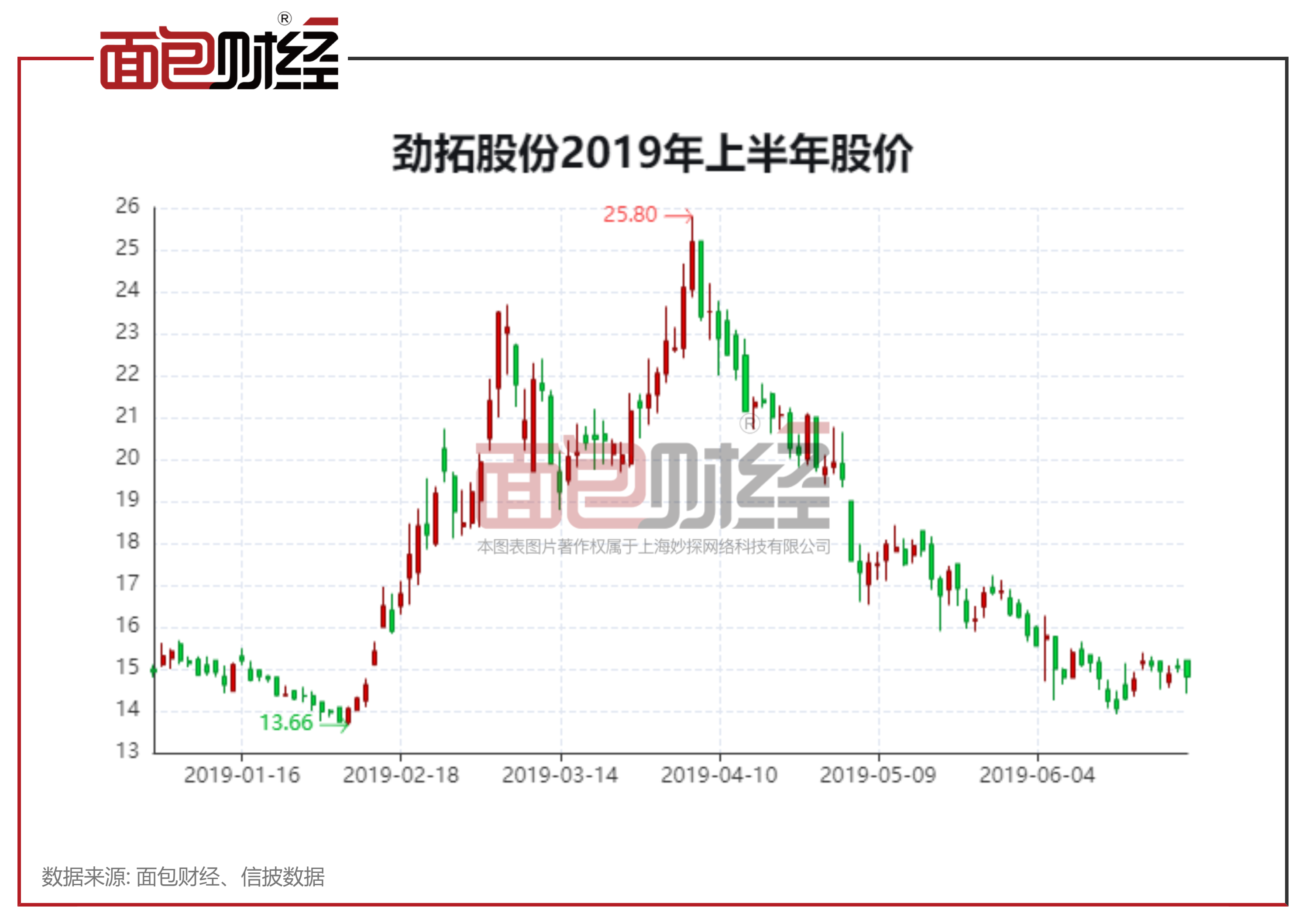 2019年1月10日至2019年4月29日的72个交易日内,劲拓股份密集发布利好公告。期间,“劲拓股份”股价从14.85元/股涨到19.92元/股,上涨34.14%。期间,“劲拓股份”在2019年4月4日收盘价达25.19元/股,相比期初上涨69.63%。