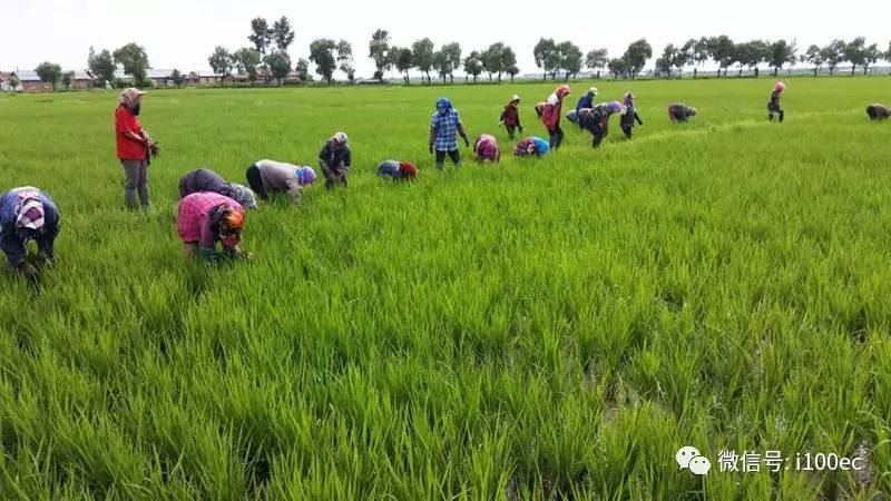 “小鸡啄米”合作社社员在给稻田人工除草