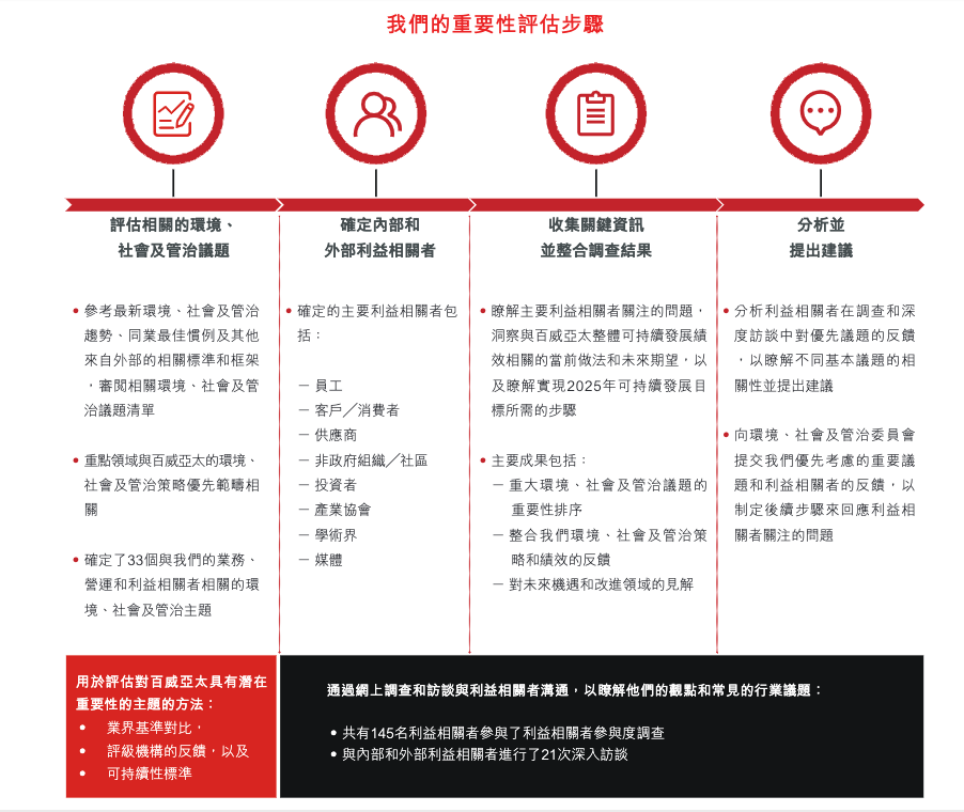 也就是说,百威报告给出了一个完整的议题评估、沟通过程的展现,看完后让人理解为什么“食品安全、人权、碳排放”等议题被列为高优先级别。