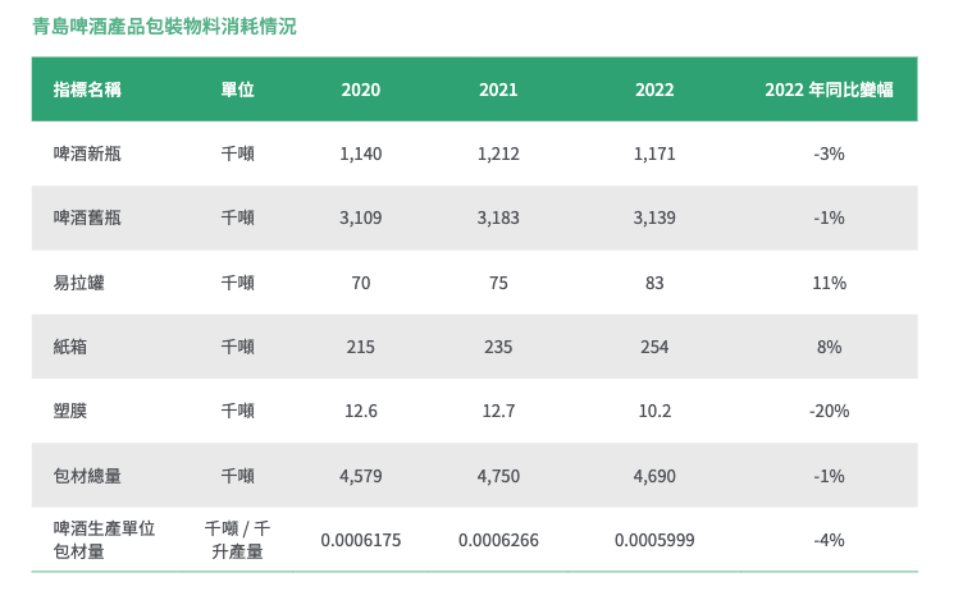 不管是啤酒新瓶、还是旧瓶、纸箱或易拉罐,在生产、运输过程中的碳排放量都不容小觑,青啤虽然列出了自己一些节能减排的措施,但如果消耗的包装物总量一直在增长的话,那么打出节省XX百分比碳排的意义并不大。