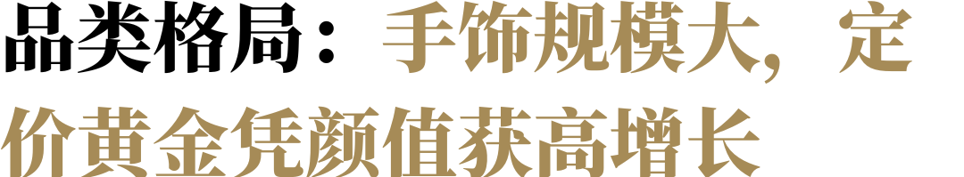 2. 品类格局 手饰为黄金市场的主流品类,定价黄金品类的销售增速达166.0%,消费者为高颜值买单意愿较高。