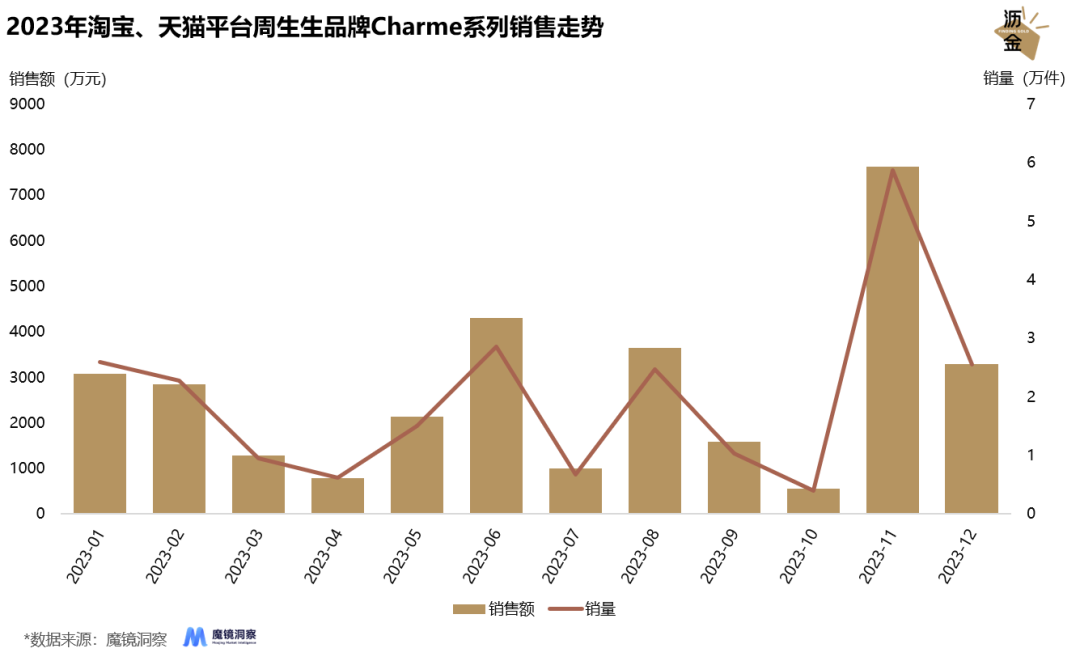 2023年淘宝、天猫平台周生生品牌Charme系列销售走势