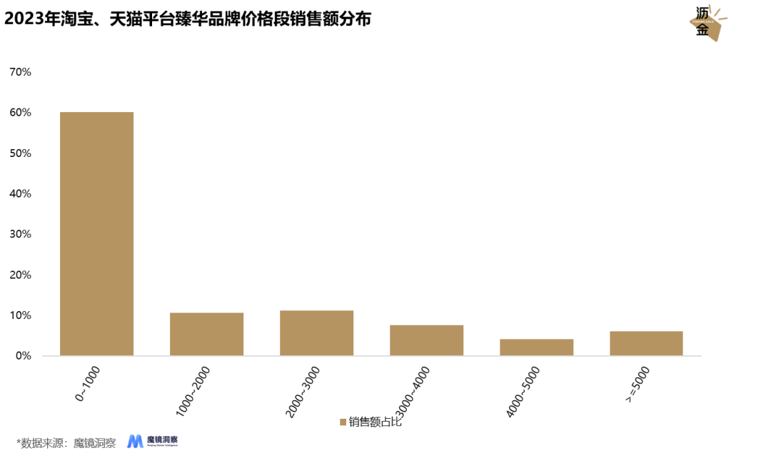 2023年淘宝、天猫平台臻华品牌价格段销售额分布