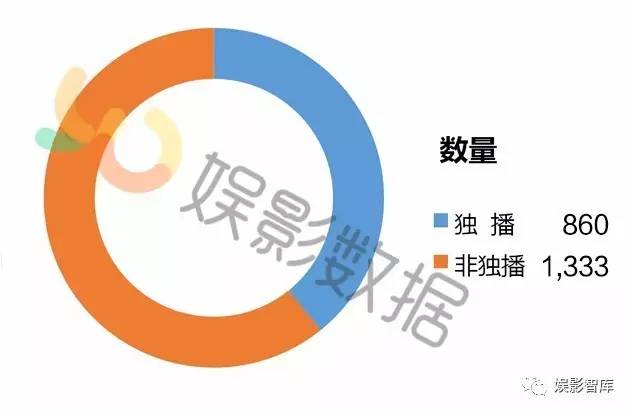 根据娱影数据系统显示,2016年全年网络电影(其中不含已下架影片)共达2193部,独播影片共有860部,非独播影片1333部。虽然在数量上,非独播影片比独播影片多了473部,具有压倒性的优势,但从播放量上来看,却是基本持平的:独播影片合计播放量104亿(其中不含已下架影片播放量),非独播影片为105亿。独播影片平均单部影片播放量达到了1213万,而非独播影片仅有791万。