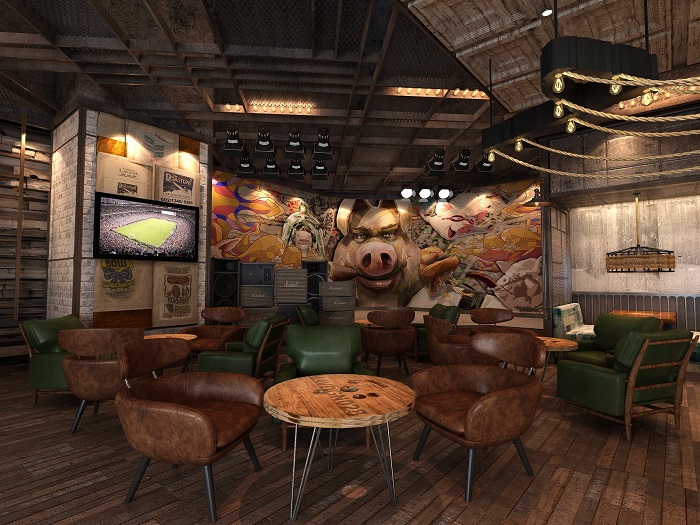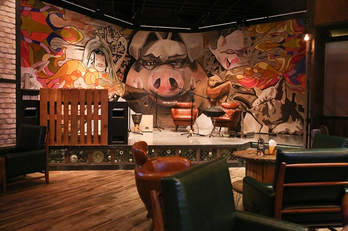 松北香格里拉的酒吧“吧界”从名字到设计都很有意思。裸露的顶棚装饰、大胆的“猪”主题涂鸦,还有铁门、麻绳、做旧的墙画,工业风的设计中带有大胆且富有趣味性的元素。主打各类鸡尾酒、啤酒等各种酒饮,招牌猪排也值得尝试。大口肯肉,大口喝酒,还有现场音乐助兴,是个可以 high 起来的好地方。