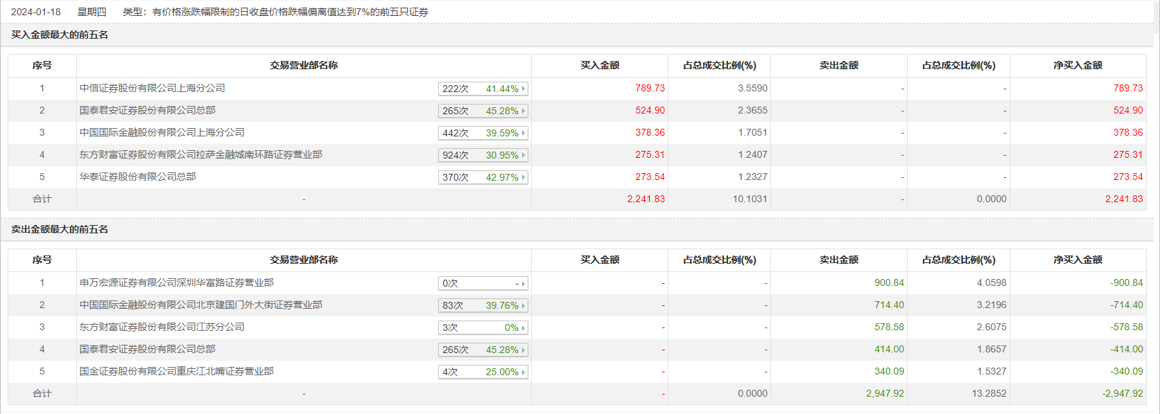 1月18日,南京商旅今日跌停,全天换手率达7.45%,振幅达7.12%。龙虎榜数据显示,营业部席位合计净卖出706.09万元。其中,申万宏源证券有限公司深圳华富路证券营业部、中国国际金融北京建国门外大街证券营业部分别卖出900.84万元、714.40万元;中信证券上海分公司、国泰君安证券总部分别买入789.73万元、524.90万元。