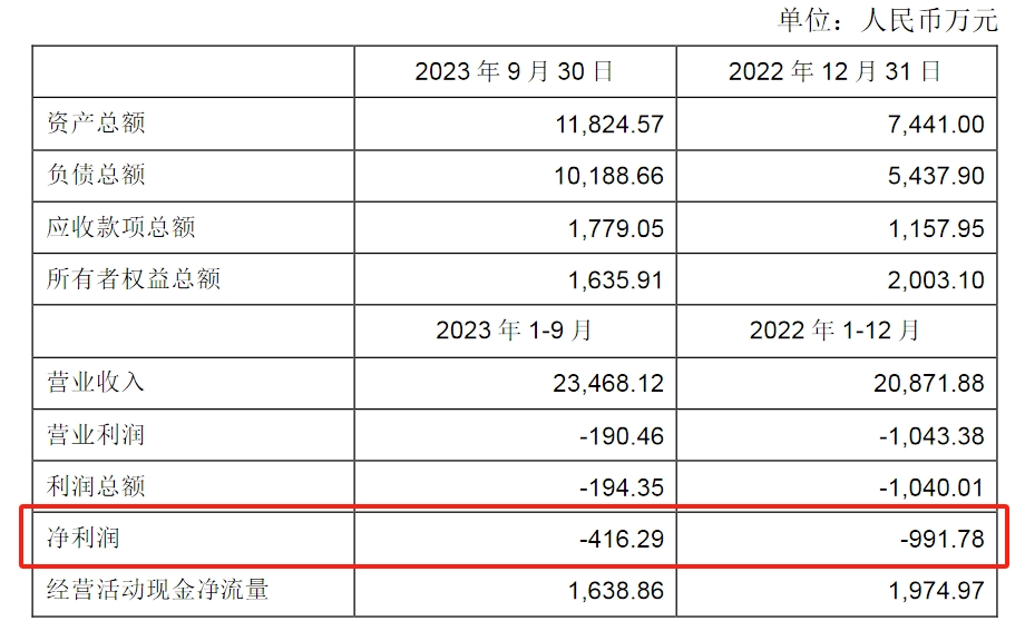 2021年、2022年、2023年前三季度,重庆瀚虹的净利润分别约为868万元、-992万元、-416万元,离对赌协议的业绩目标相差甚远。