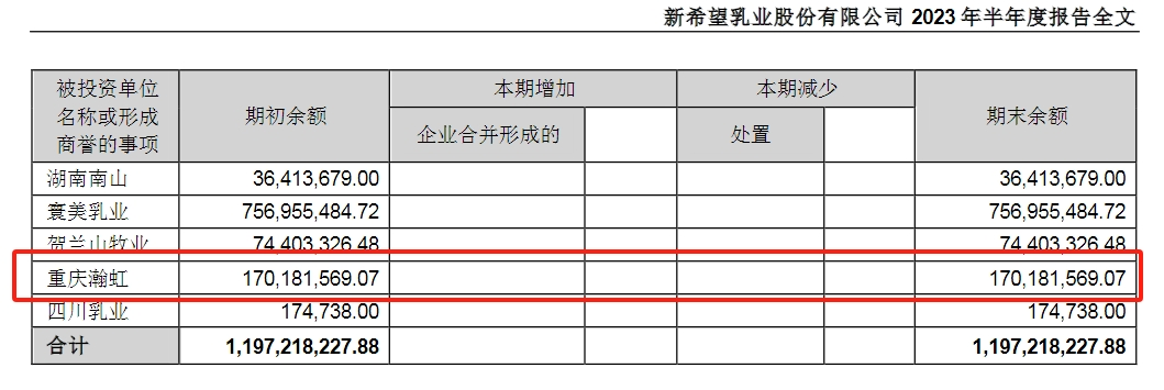 此外,新乳业财报显示,截至2023年半年度末,重庆瀚虹形成的商誉约为1.7亿元。重庆瀚虹不并入财务报表,也意味着其产生的商誉减值风险不会影响到新乳业的年度财报。