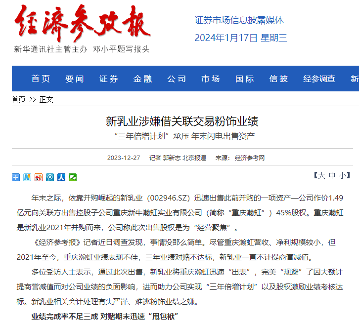 也正因此,新乳业的做法引起了市场的高度关注,有主流媒体质疑其借此掩盖投资失利事实,并有规避商誉计提的嫌疑。
