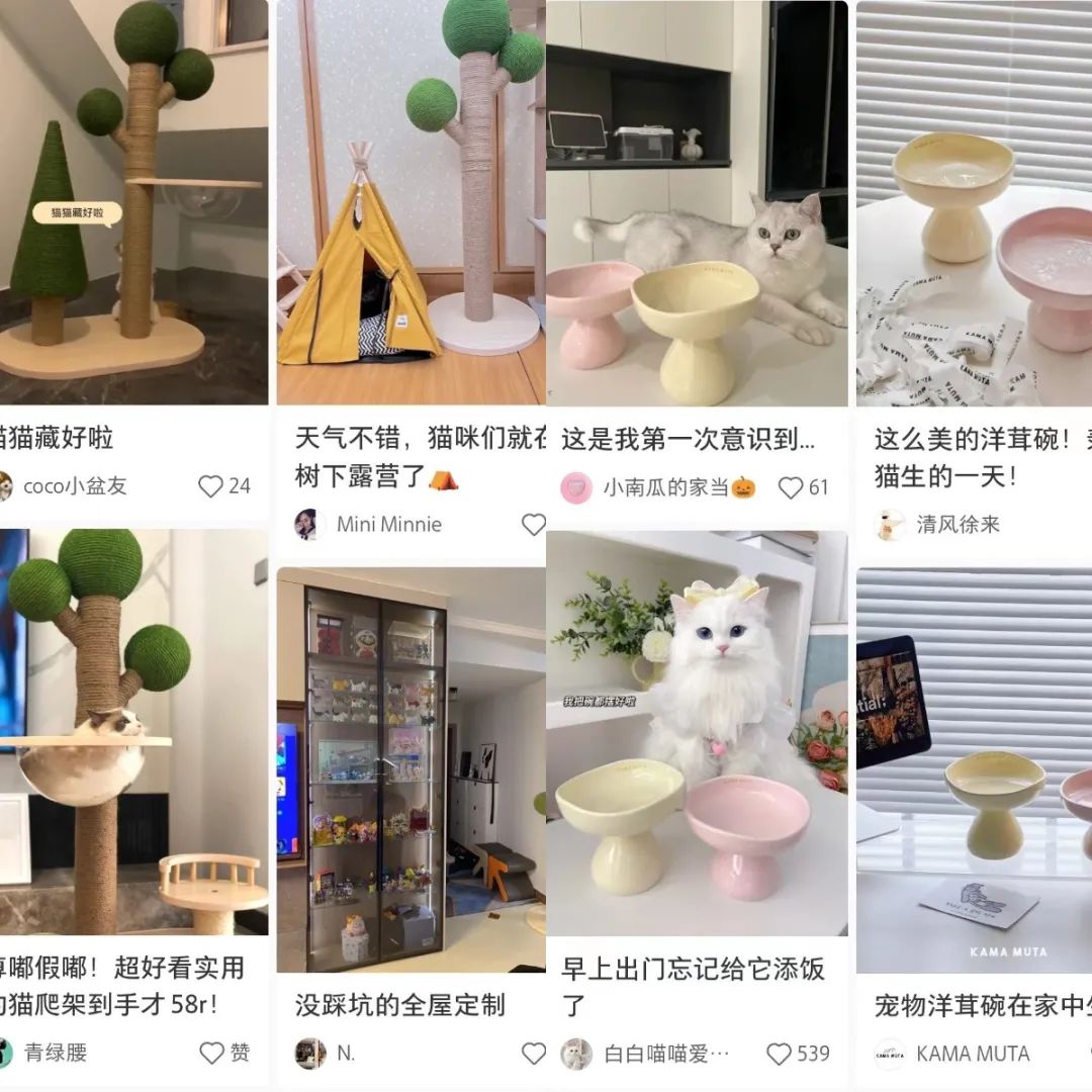 扎进小红书学习一周后,航仔就开干了。她选择的是宠物赛道。她每天发宠物用品上小红书,同一商品的不同角度,同一角度的不同商品,只要有一条笔记“火”了,就天天变换着文案反复发同一图片。