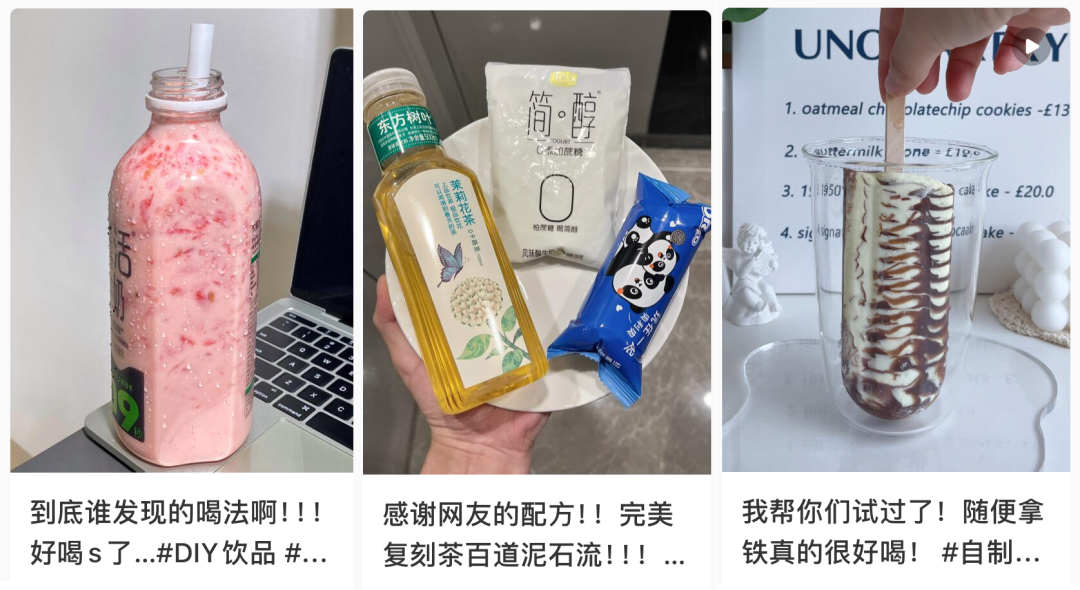 从小众个体的乐子到风靡互联网,这股“爆改食饮”的风潮之所以流行,不仅是因为DIY本身有动手乐趣,还是因为小红书平台上有大量用户分享体验和成果,刺激更多灵感,并一传十、十传百。