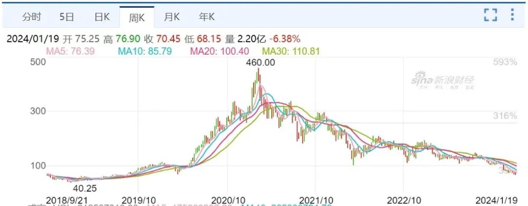 然而,当其它内在价值仍在酝酿中时,表象估值即外卖业务的估值却到达冰点:1月17日,美团港股股价下跌6.97%,收报68.75港元,创4年来新低。该价格跌破了2018年美团上市时69港元的发行价。