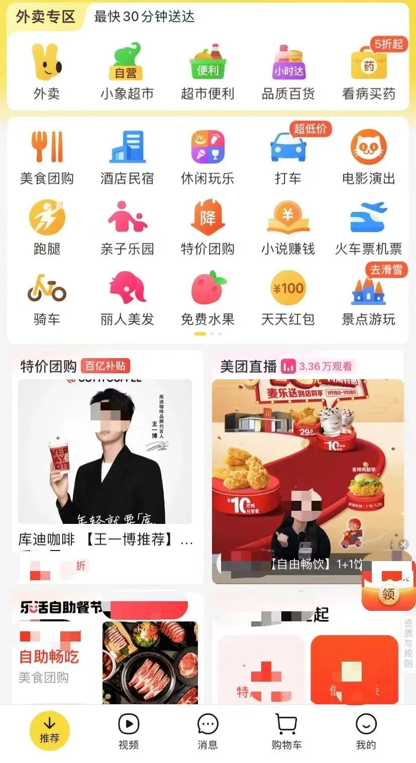 对于视频内容的冲击,美团也同样在尝试内容视频化转型, 首页底部第二个tab从“电商”改为“视频”。用户点击浏览视频,达到一定时长和观看数量,会收到美团直接入账或微信账户的现金红包激励。据晚点LatePost报道,大众点评内容团队也被要求全面学习小红书、学习抖音。