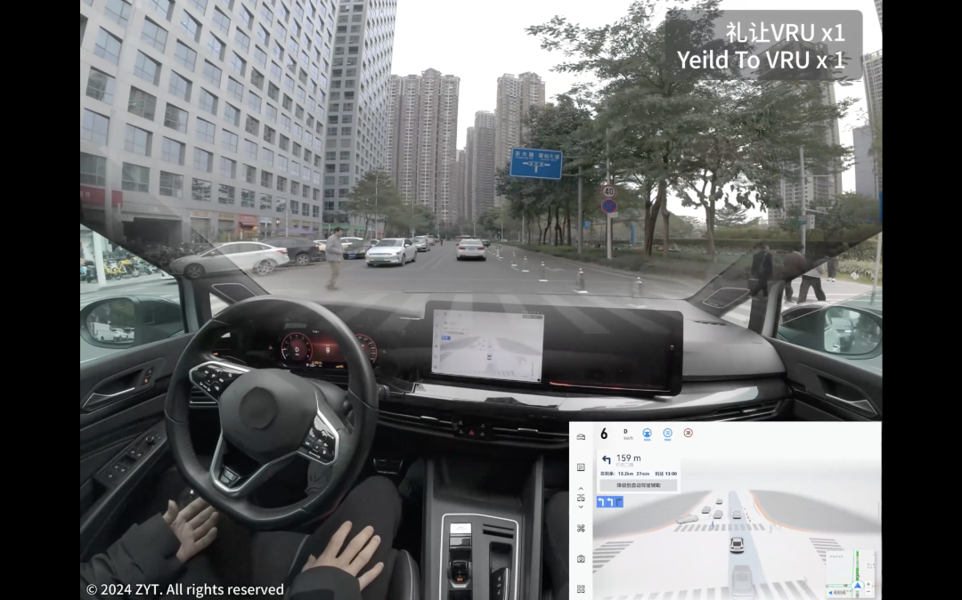 在高通展台的demo视频里,搭载了这套方案的测试车辆展示了在城区交通场景中,车辆通过无车道线路口、针对交通信号灯的识别和应对,对道路弱势使用者(VRU)的避让和绕行策略,以及路口左右转等城区NOA功能,以及跨层记忆泊车、代客泊车。从演示视频来看,测试车辆的通行效率、稳定性和灵活应对能力,并不亚于当前的主流方案。