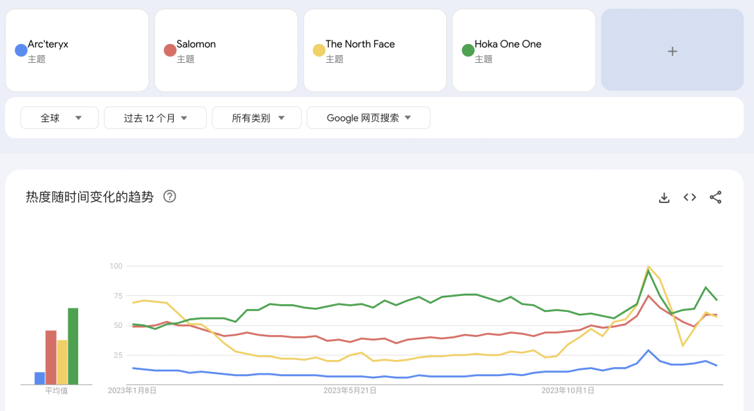 过去12个月Google上关于四个品牌的搜索热度 图源:Google Trends