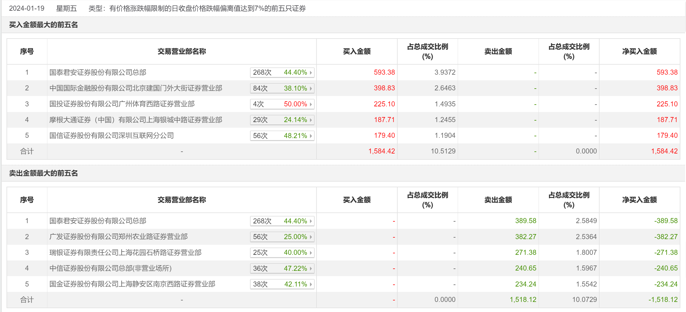 1月19日,柯利达今日跌停,全天换手率达7.02%,振幅达11.89%。龙虎榜数据显示,营业部席位合计净买入66.31万元。其中,国泰君安证券总部、广发证券郑州农业路证券营业部分别卖出389.58万元、382.27万元;国泰君安证券总部、中国国际金融北京建国门外大街证券营业部分别买入593.38万元、398.83万元。