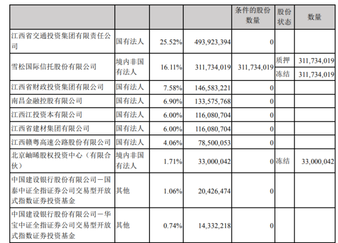 2022年4月,国盛金控表示,因雪松信托未按照与公司签订的《业绩承诺补偿协议》约定履行补偿义务,雪松信托应补偿股份数量3.11亿股,支付补偿款18.31亿元、返还现金股利539万元。同年4月21日,南昌仲裁委受理了公司就业绩承诺补偿一事所提出的仲裁申请,并对该仲裁案件所涉财产进行保全、冻结了雪松信托在银行38亿元存款,或查封、扣押其相应价值的资产,所持公司3.12亿股份也全部被质押、冻结。