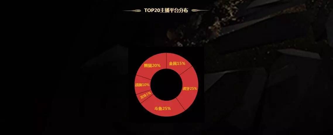 根据游久直播发布的2016年年中主播热度排行榜显示,在Top20主播平台分布图当中,经过大发力的虎牙截止2016年6月顶级主播的数量已经和斗鱼持平,均占比25%排名第一。