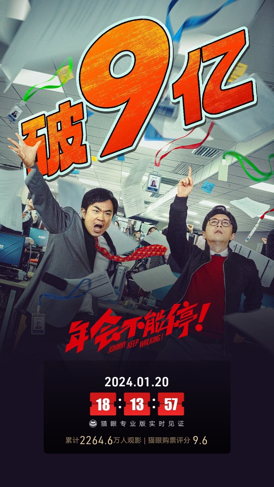 据猫眼专业版数据,电影《年会不能停!》上映23天 ,总票房破9亿。