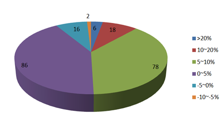 据私募拍拍网数据中心统计,206只债券策略私募产品去年平均收益率为5.55%。其中,184只实现正收益,占比九成,仅有19只产品出现亏损。其中,盈利0-5%和5%-10%产品分别有86、78只。