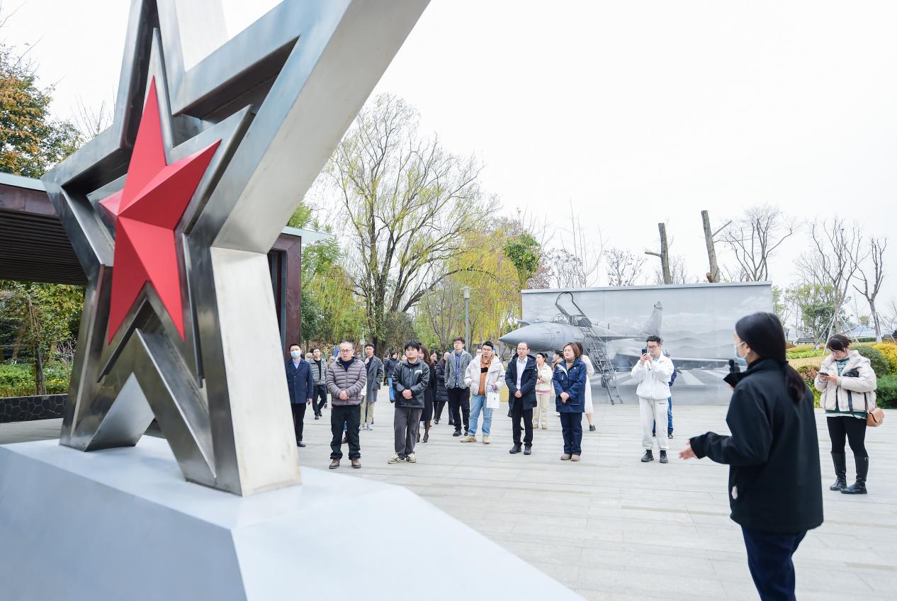 行走在成飞公园,即便是在冬日,也能看到满园生机。采风活动围绕成飞航空主题教育基地展开,该点位陈列了多架战斗机与无人机模型及真机,展示了世界航空和中国航空发展历程以及战斗机研制流程和制造工艺,是一座园林式战斗机博物馆,也是青羊区航空新城工业基因的文化典范场景。