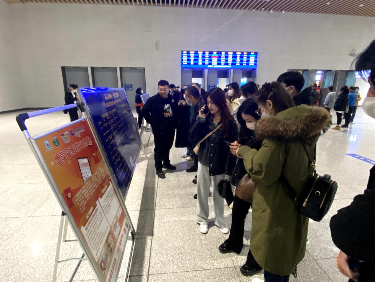 为方便“撸串”族品淄博烧烤,建行在淄博市火车站布置海报展板,安排专人向来淄的游客介绍“五折乘公交”、建行生活平台优惠等活动