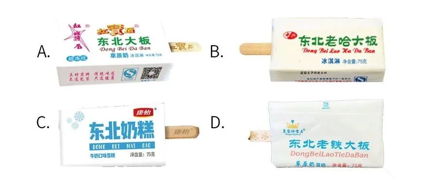 在此答案基础上,我们要回答的问题再次升级:以下哪个才是东北大板草原奶冰淇淋的正版包装?