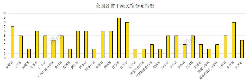 民宿,指利用自用住宅空闲房间,或者闲置的房屋,结合当地人文、自然景观、生态、环境资源及农林渔牧生产活动,以家庭副业方式经营,提供旅客乡野生活的小型住宿设施。这种新型营收方式,让不少农村家庭多了一条增收渠道,闻香而来的民宿也越来越多,全国逐渐呈现遍地开花之势。这一点,不管从入选国家甲级还是乙级的民宿布局来看,都能窥出一二。