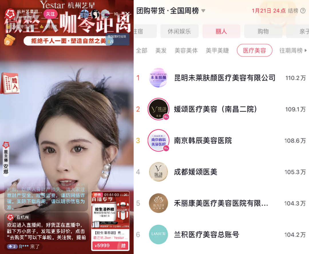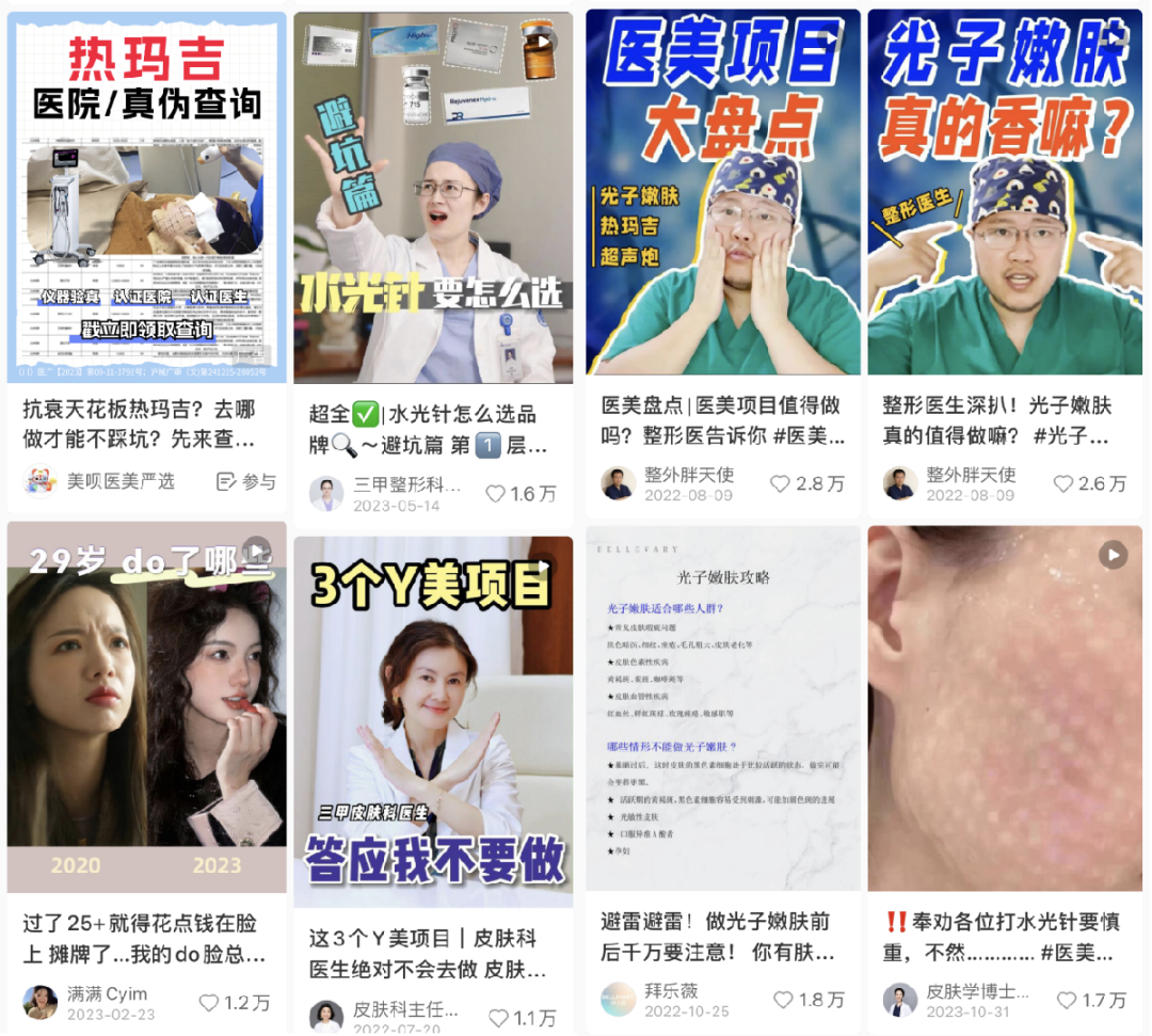 内容平台因其流量基本盘庞大,能以短视频、直播等兴趣内容激发出闲逛型需求,近年来成为医美机构增长的渠道之一。