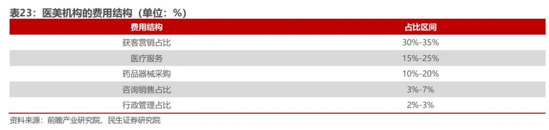 来自胡润研究院的数据指出,中国医美机构的净利润率仅为1%~10%。民生证券的一份研究报告显示,在医美机构的成本结构中,获客营销占比达到30%~35%,在所有成本支出中占比最高,单次获客成本甚至可达千元。