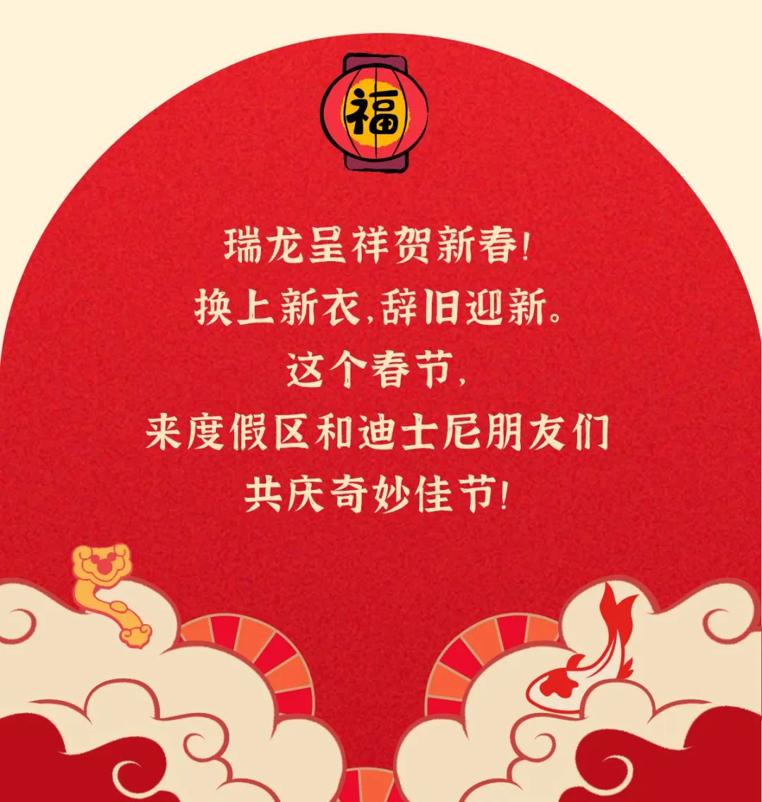 瑞龙呈祥贺新春,换上新衣,辞旧迎新。这个春节,来度假区和迪士尼的朋友们共庆奇妙佳节。