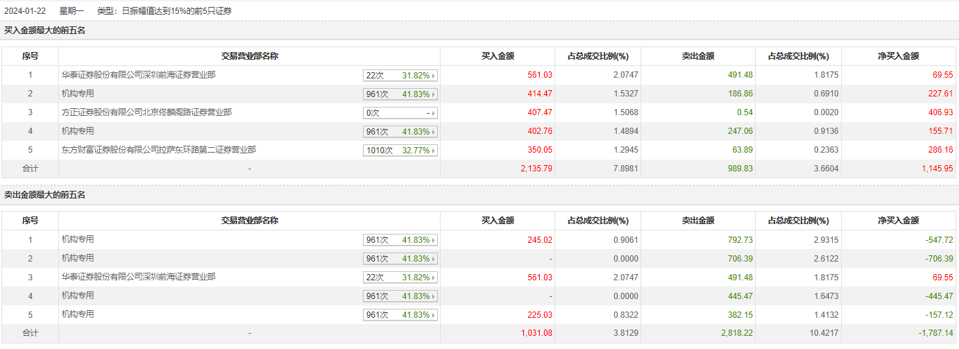 汇洁股份1月22日跌7.74%,全天换手率达17.63%,振幅达15.04%。龙虎榜数据显示,营业部席位合计净卖出710.73万元。其中,机构买入1287.28万元,卖出2760.65万元,合计净卖出1473.37万元。此外,华泰证券深圳前海证券营业部、东方财富证券拉萨东环路第二证券营业部分别卖出491.48万元、63.89万元;华泰证券深圳前海证券营业部、方正证券北京佟麟阁路证券营业部分别买入561.03万元、407.47万元。