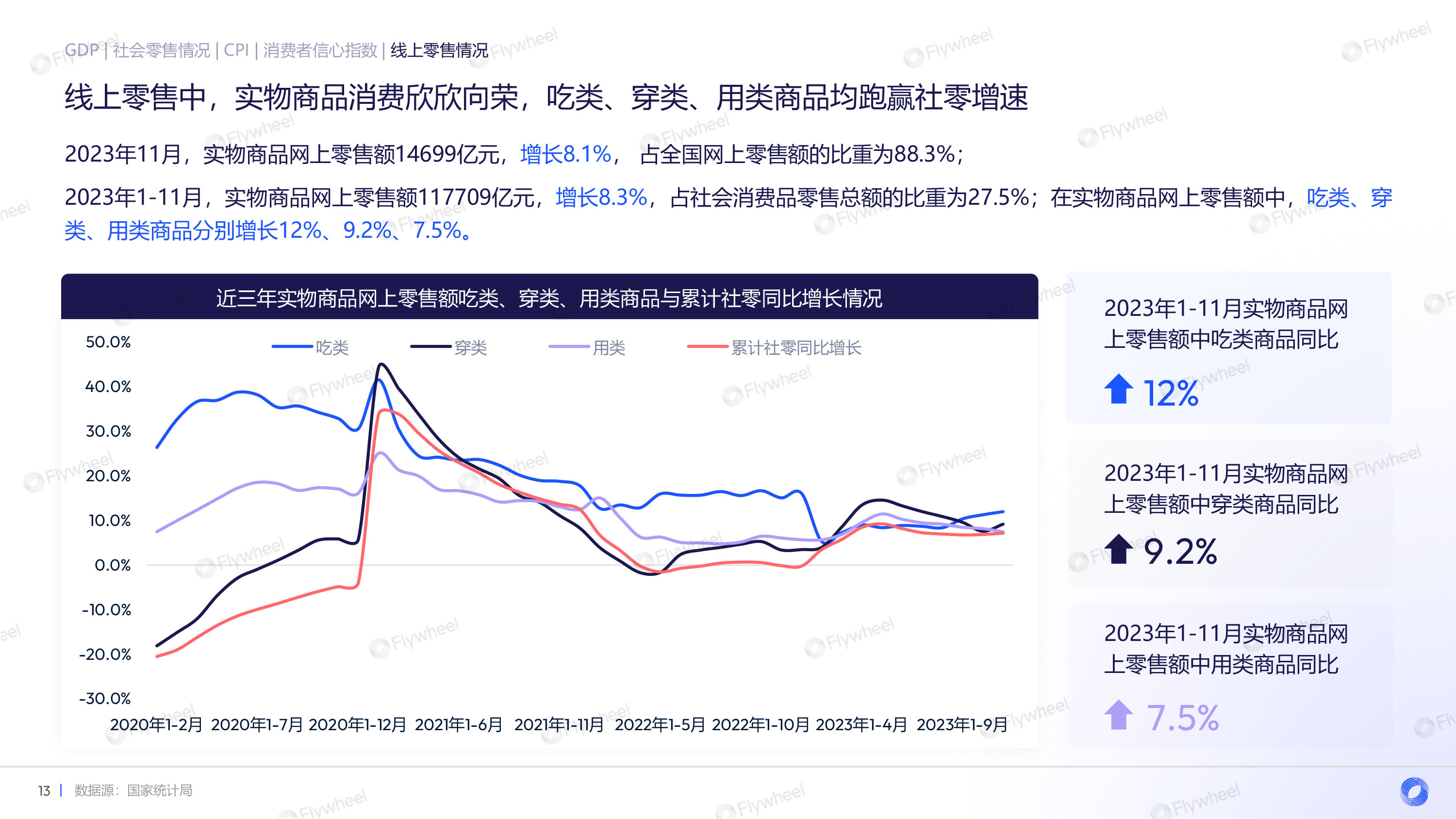 - 宏观经济回顾:中国经济呈现积极复苏的态势,前三季度GDP同比增速超越年度目标,消费成经济增长最大驱动力,线上线下消费恢复活力。