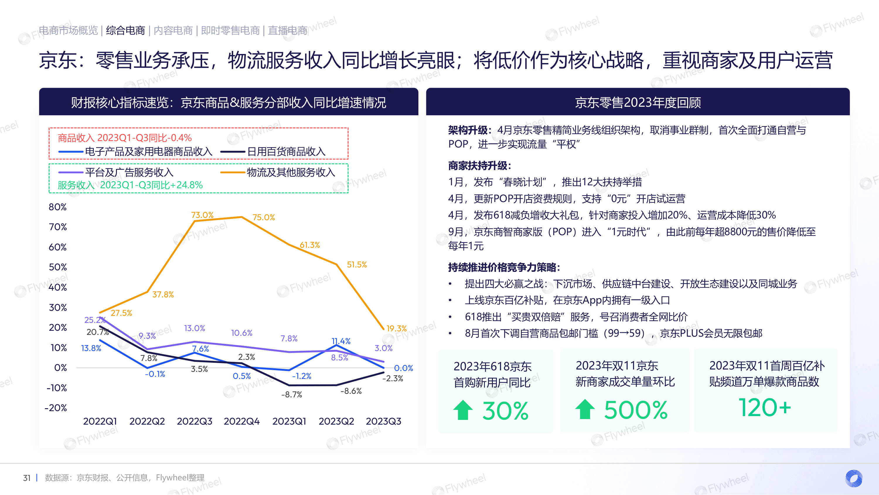 京东在零售业务方面承受压力,但物流服务收入同比增长表现亮眼。京东也将低价作为核心战略,重视商家和用户运营。