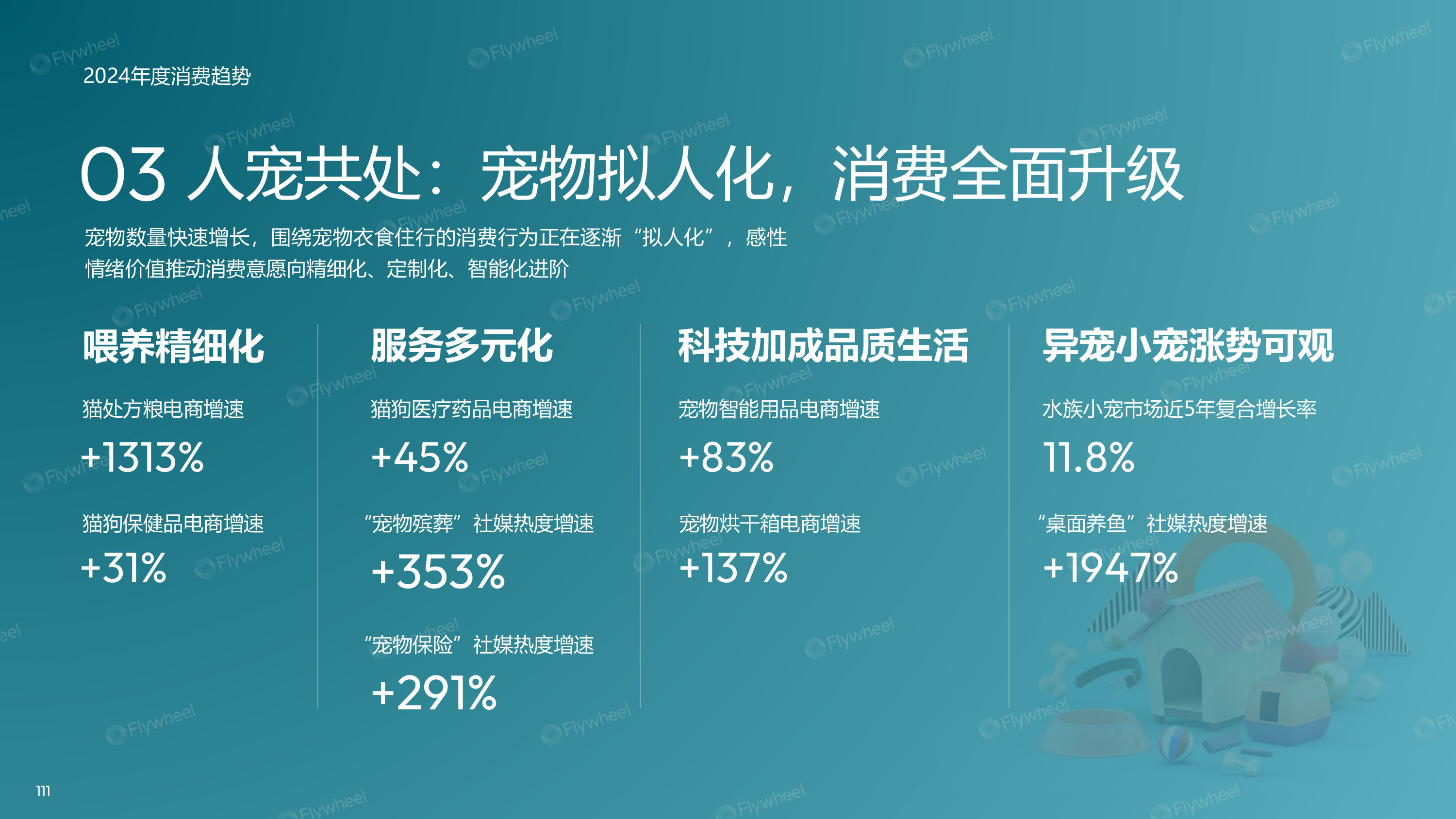 人宠共处:宠物拟人化,消费全面升级。宠物数量快速增长,围绕宠物衣食住行的消费行为正在逐渐“拟人化”,感性情绪价值推动消费意愿向精细化、定制化、智能化进阶。