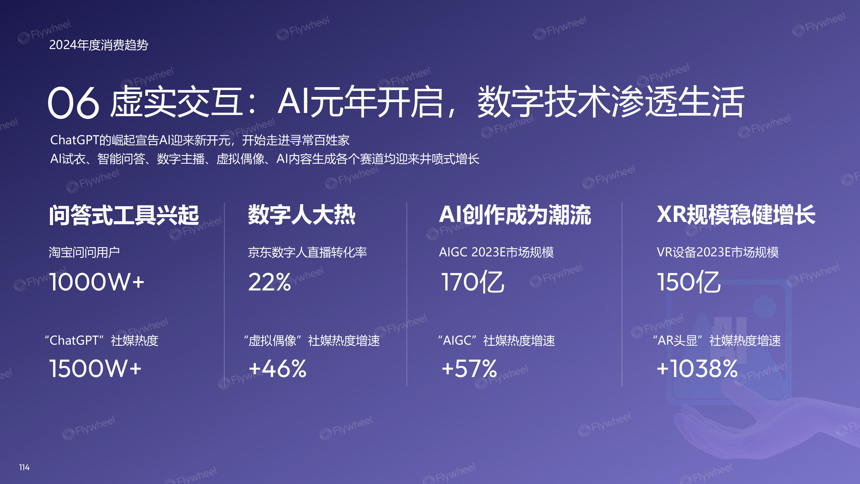 虚实交互:AI元年开启,数字技术渗透生活。ChatGPT的崛起宣告AI迎来新开元,开始走进寻常百姓家。AI试衣、智能问答、数字主播、虚拟偶像、AI内容生成各个赛道均迎来井喷式增长。