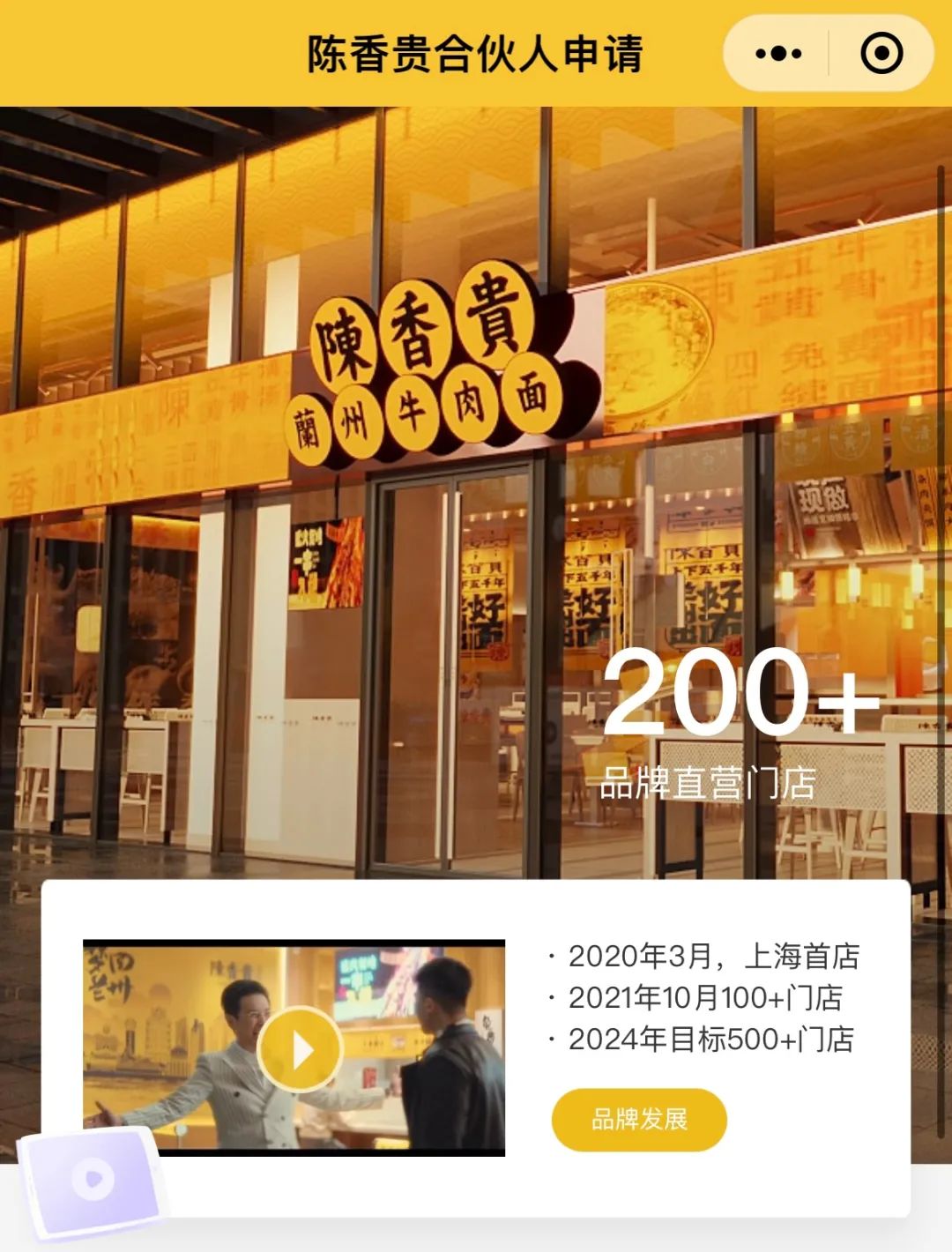 图源陈香贵官方微信小程序加盟模式更适合一些比较轻的模式,相较之下,面馆加盟遇到的挑战也更大,如若因为是加盟店就降低标准,更可能反噬其品牌力。